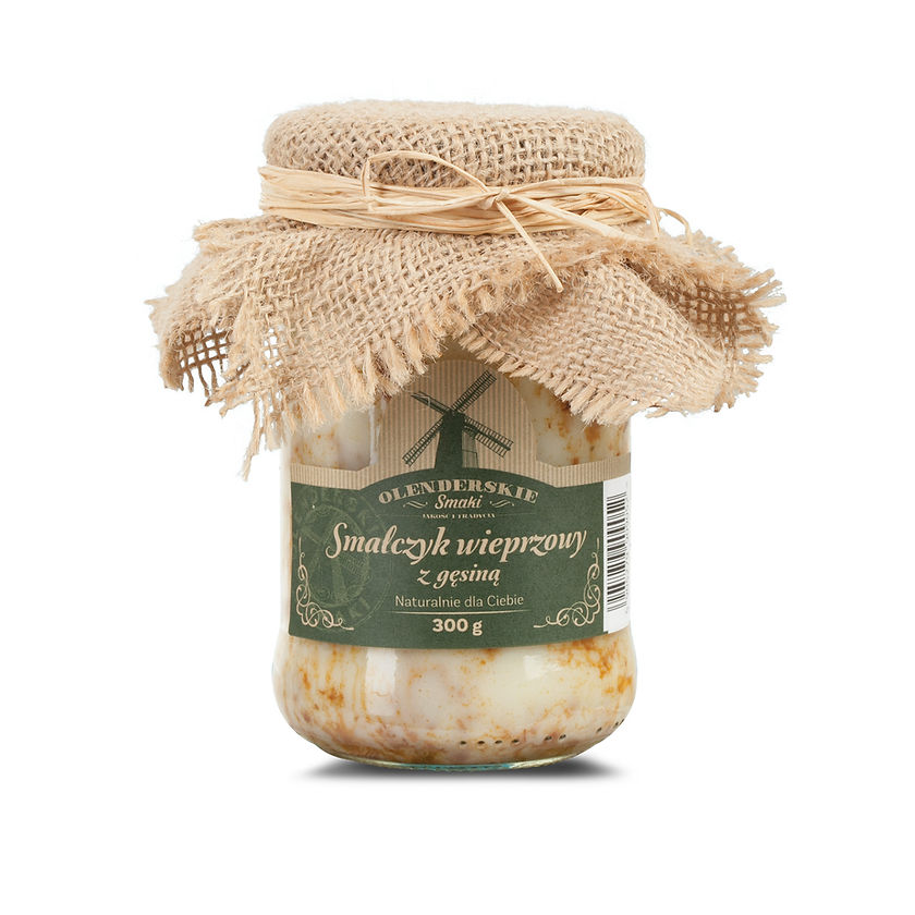| Skład | tłuszcz wieprzowy 70%, tłuszcz gęsi 30%, sól, pieprz, cebula, czosnek |